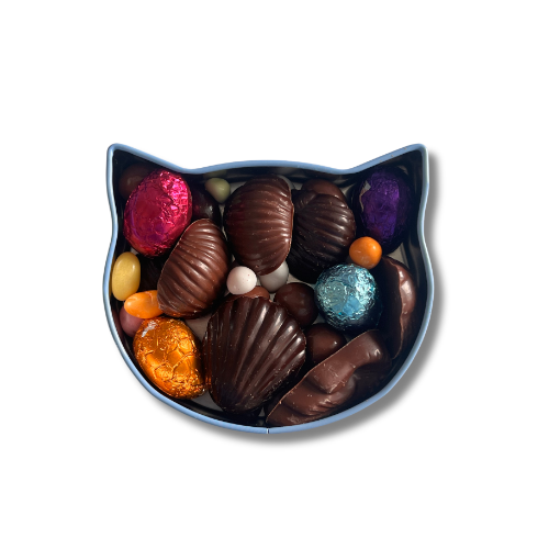 27,00€Select optionsPoule en chocolat noir ou lait garni d’un assortiment de petits chocolats de Pâques (fritures en chocolat noir et lait, oeufs pralinés, ….)