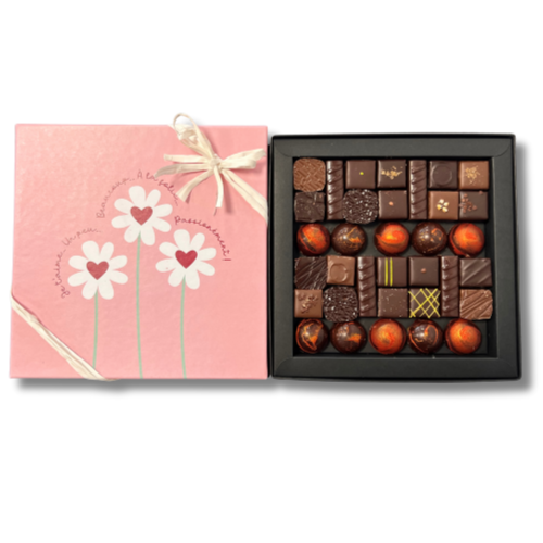 Coffret  garni de 34 chocolats (290g) : Chocolats fins ganaches et pralinés, et  dôme de caramel salé